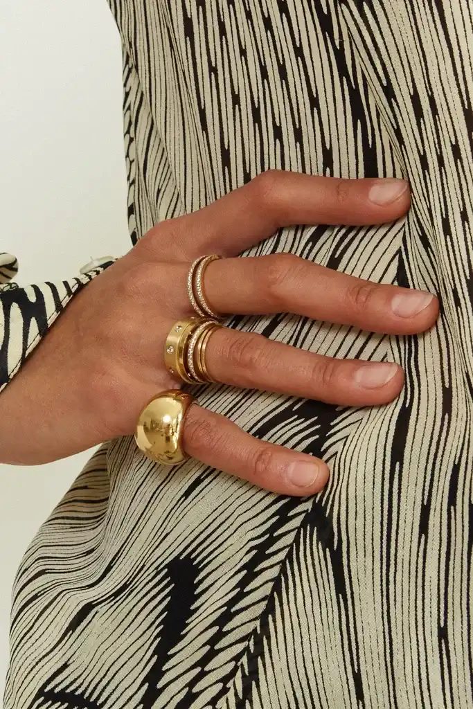 انباشتن انگشترها، لایهبندی گردنبندهایی با طولهای مختلف و ترکیب دستبندها همه جزو این ترند هستند. زیبایی لایهبندی ماکسیمالیستی در انعطافپذیری آن است. قطعات میتوانند برای لباسهای روزانه ساده و همچنین پوششهای شیک شبانه به راحتی ترکیب شوند. گردنبندهای لایهای با بافتهای مختلف، از زنجیرهای ظریف گرفته تا قطعات برجسته، میتوانند در کنار هم به شکلی متعادل و در عین حال جذاب دیده شوند. همچنین، انباشتن انگشترها، چه حلقههای ساده، با سنگهای قیمتی یا قطعات برجسته، اضافه کردن عنصری جذاب به سبک شخصی ایجاد میکند.