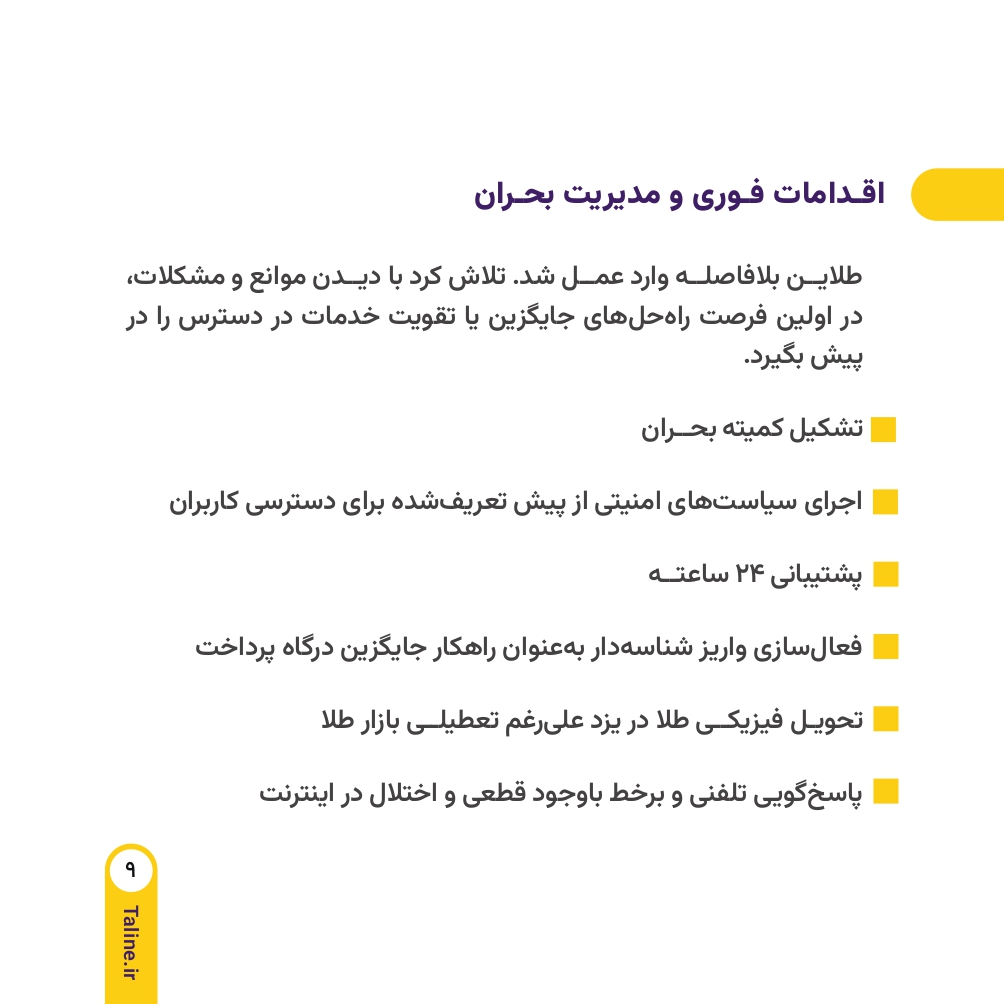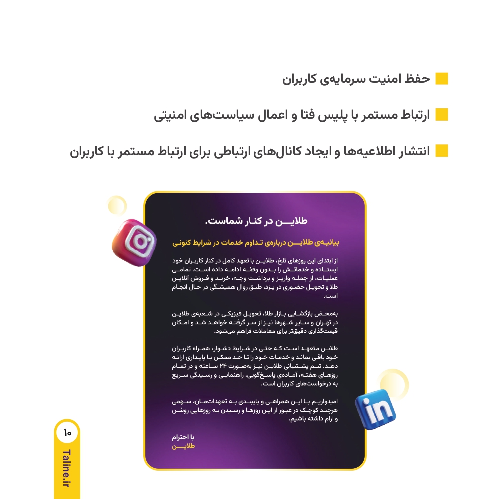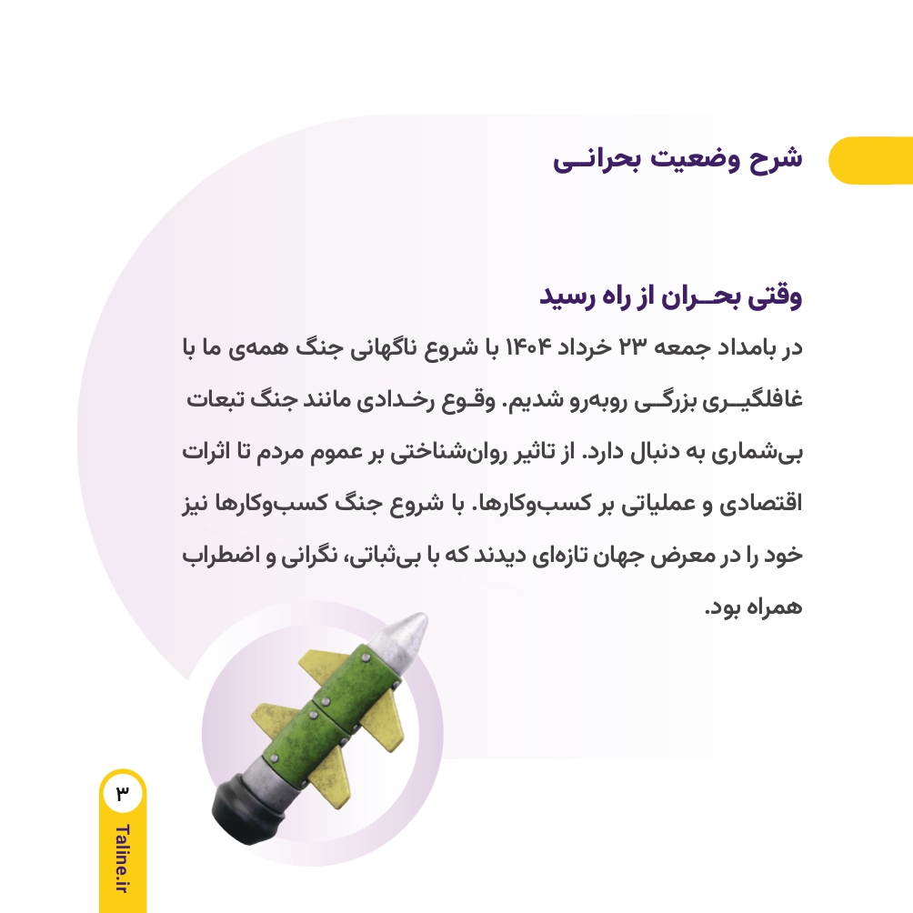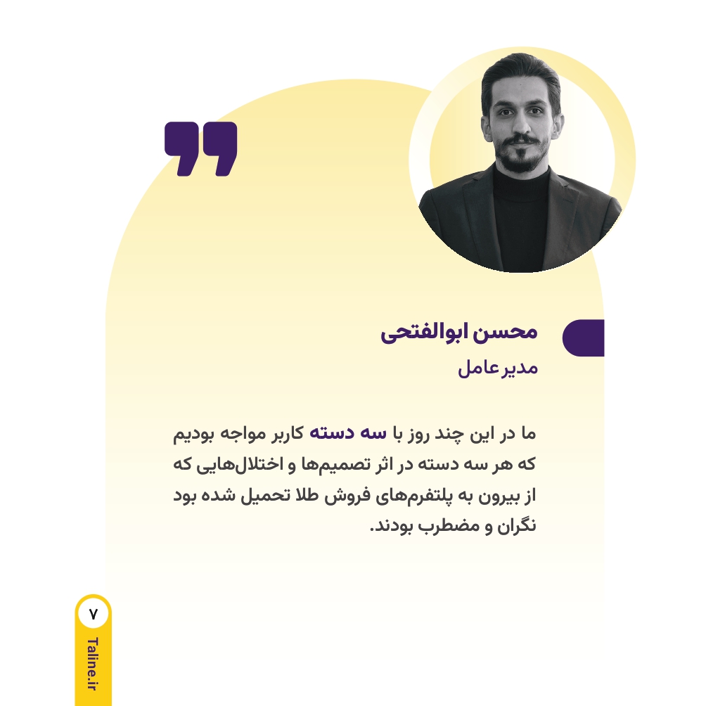 در میانه روزهای جنگ ۱۲ روزه علیه کشور عزیزمان ایران که بسیاری از فعالیتهای اقتصادی با اختلال، کندی یا توقف مواجه شده بود، ما در طلاین تنها یک هدف را دنبال کردیم. هدف ما حفظ ثبات، اعتماد و ادامه خدمات بدون وقفه به شما عزیزان بود. در واقع در همین شرایط بحرانی بود که احساس کردیم باید نقش پررنگ تعهد را بیش از پیش به مشتریان خود نشان دهیم. از همین رو در ادامه گزارشی جامع از روند فعالیت مجموعه در طی دوران جنگ را میتوانید بخوانید.