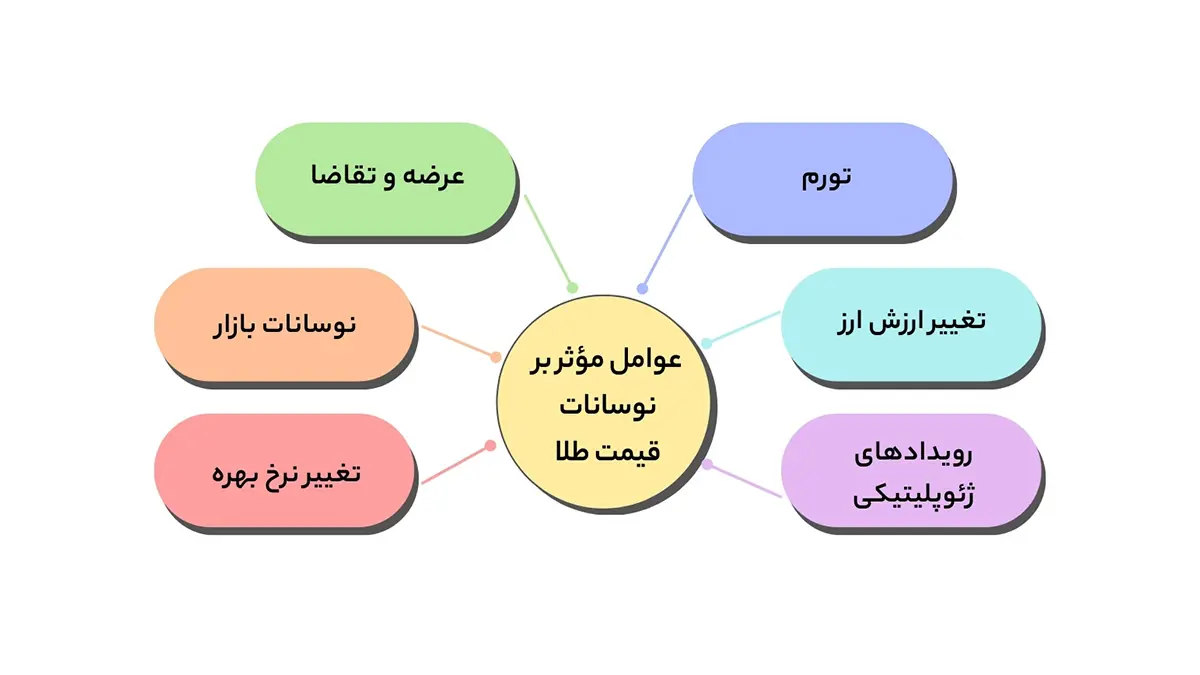 | نوسانات بازار جهانی | اگر قیمت طلا در بازارهای جهانی به دلایلی نظیر افزایش نرخ بهره یا کاهش تقاضای جهانی کمتر شود، بر قیمت طلا در ایران نیز تأثیرگذار است. |
